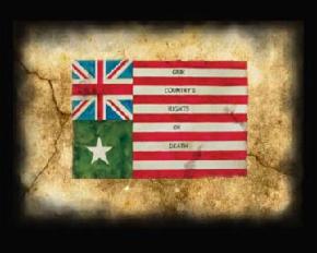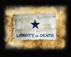 Designed by Goliad garrison commander Capt. Phillip Dimmitt, and flown over the Presidio La Bahia; it was meant to reflect the Texans complete separation from Mexico as an independent Republic. May have flown at the signing of the Goliad Declaration of Independence, December 1835 and said by some to be the "First Flag of Texas Independence."