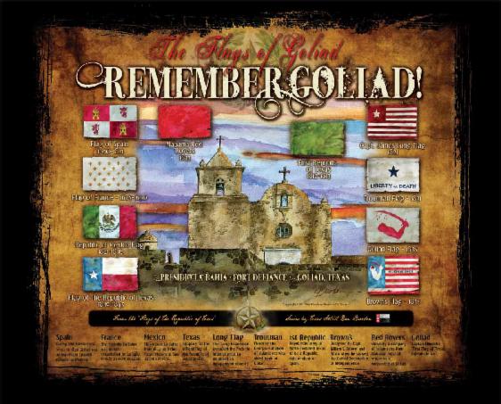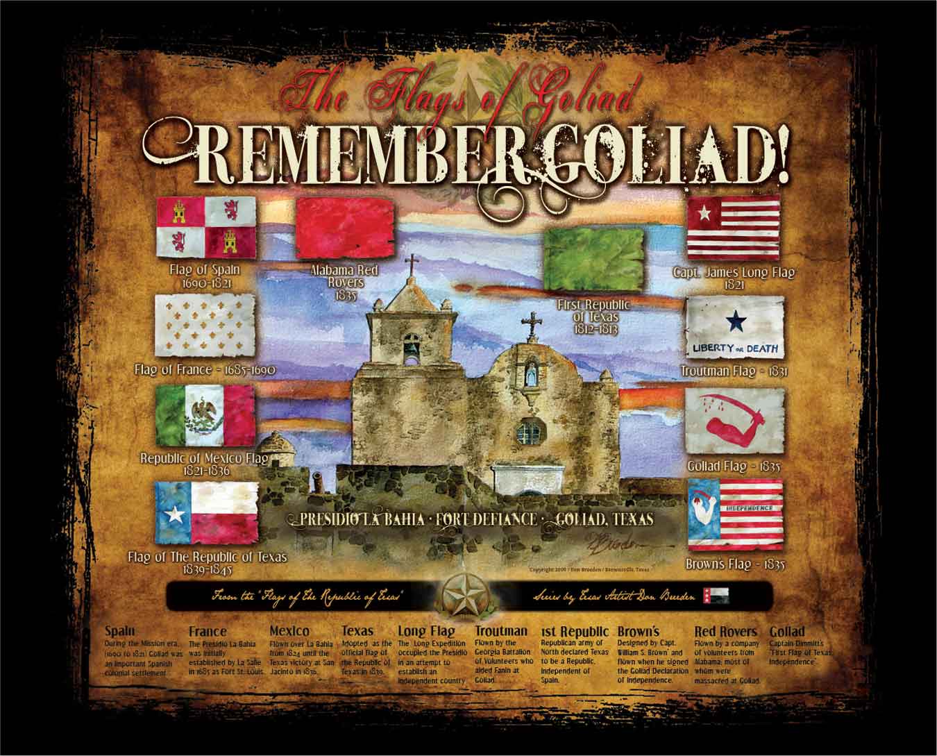 Most people remember the Alamo, but few remember the second part of that famous slogan: "Remember Goliad!" Presidio La Bahia was the scene of the worst massacre in the history of the Republic of Texas. Here are the flags associated with Presidio La Bahia. (Click on the Poster image for a larger view)